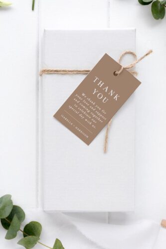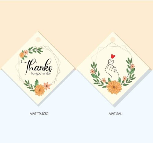 Tag cảm ơn (thank you tag) là tấm thiệp nhỏ được đính kèm theo sản phẩm, túi quà, hộp quà hoặc đơn hàng online.