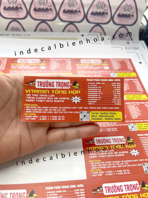 Dán lên bao bì, chai lọ, hộp giấy, túi nhựa… thể hiện đầy đủ thông tin sản phẩm.